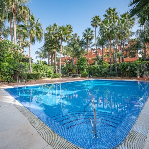 Położony w odległości krótkiego spaceru od słynnego kurortu Puente Romano i plaż Golden Mile, dom w zabudowie bliźniaczej jest rozłożony na trzech poziomach i ma orientację zachodnią. Od południa dom otrzymuje mnóstwo naturalnego światła, dzięki czemu wieczorami można podziwiać piękne zachody słońca z tarasu.