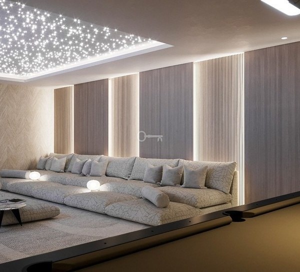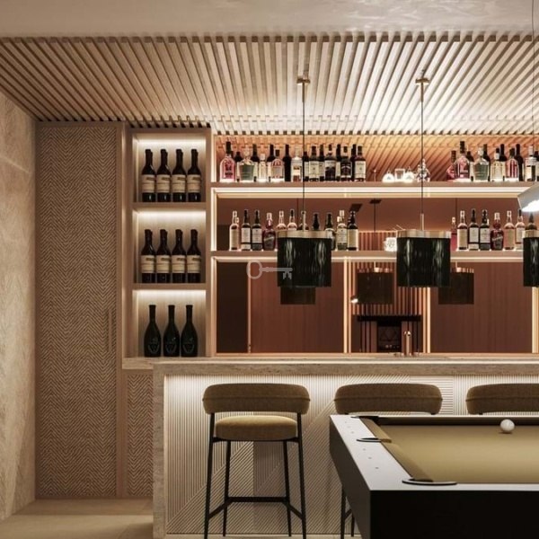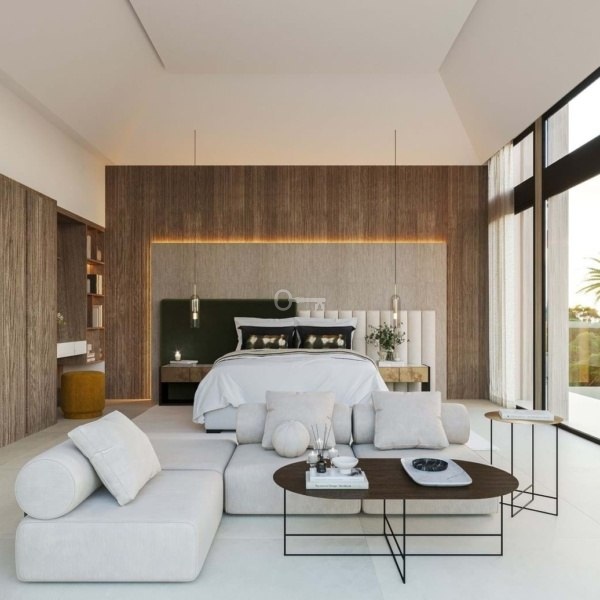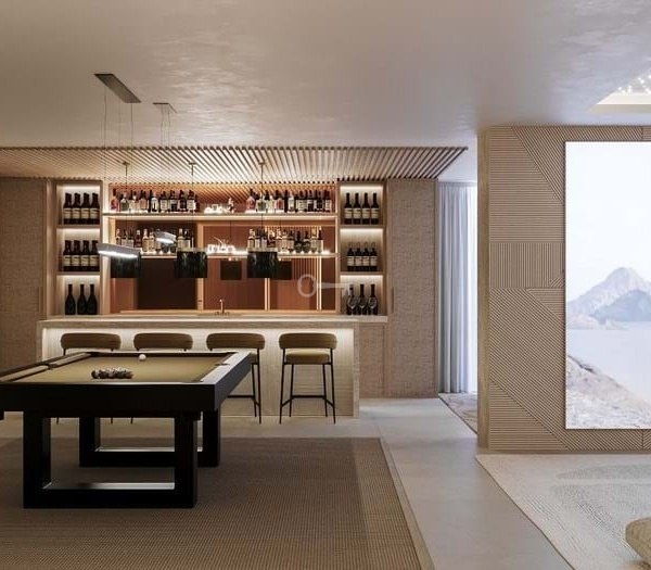 Willa ma imponującą powierzchnię 551,92 m², uzupełnioną rozległymi tarasami o powierzchni 2 210,2 m² i działką o powierzchni 743,36 m². Zakwaterowanie obejmuje 4 przestronne sypialnie i 5 luksusowych łazienek, zapewniając dużo miejsca dla rodziny i gości. Wnętrze obejmuje kuchnię na otwartym planie, wyposażoną w nowoczesne urządzenia i pomieszczenie gospodarcze, podczas gdy rozległe obszary mieszkalne są ozdobione drewnianymi podłogami i korzystają z ogrzewania podłogowego. Nieruchomość obejmuje również salę kinową, pokój gier, piwniczkę z winami i toaletę dla gości, zaspokajając zarówno potrzeby rozrywkowe, jak i praktyczne.