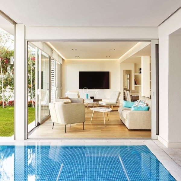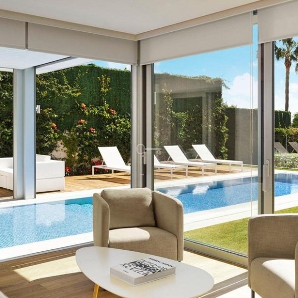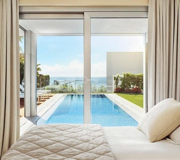 Współczesna willa przy plaży 2. linii w Puente Romano, Golden Mile-Marbella. Zbudowana na 2 poziomach, ta nieruchomość składa się z dużego salonu / jadalni na otwartym planie ze zintegrowaną nowoczesną kuchnią, w pełni wyposażoną w najwyższej jakości sprzęt AGD i dostępem do południowego tarasu, ogrodu i basenu. Na tym poziomie znajdują się 2 sypialnie, z których jedna ma dostęp do ogrodu. Na górnym poziomie znajduje się główna sypialnia z łazienką, garderobą i dostępem do tarasu z zapierającymi dech w piersiach widokami na morze, a także dodatkowa dwuosobowa sypialnia z łazienką. Nieruchomość uzupełnia niezależna sypialnia z łazienką na parterze z osobnym dostępem, idealna dla personelu lub gości. Dodatkowe funkcje obejmują: ogrzewanie podłogowe, klimatyzację, marmurowe podłogi, duży basen, system alarmowy, rolety antywłamaniowe, drewniane podłogi itp.