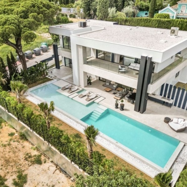 Witamy w tej oszałamiającej, nowej luksusowej willi z 5 sypialniami w samym sercu upragnionej Golden Mile w Marbelli, a konkretnie w Rocío de Nagüeles. Ta ekskluzywna nieruchomość płynnie łączy elegancki design z nowoczesnymi udogodnieniami, oferując niezrównane luksusowe życie w doskonałej lokalizacji.