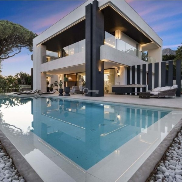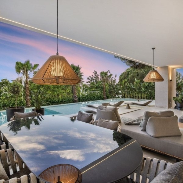 Strategicznie położona na wzniesieniu od strony południowej, willa oferuje spektakularne widoki na Morze Śródziemne i kultową górę La Concha, wypełniając wnętrza naturalnym światłem przez cały dzień.