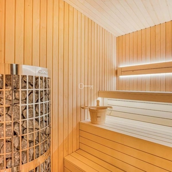 Piwnica to luksusowe sanktuarium wyposażone w saunę fińską, siłownię, dużą dodatkową sypialnię, pomieszczenie do przechowywania, kino domowe, toaletę dla gości, strefę telewizyjną i unikalnie zaprojektowany bar. Meble i dywany dostarczane przez prestiżowe włoskie marki, takie jak „Bonaldo”, „Ditre” i „Talenti”, podkreślają elegancję i komfort willi.