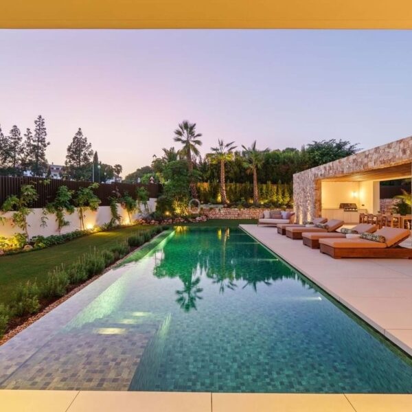 Położone w prestiżowym klubie Lomas de Marbella na Złotej Mili Marbellas, to architektoniczne arcydzieło na nowo definiuje współczesne śródziemnomorskie życie. Zajmująca powierzchnię 1 460 m² na działce o powierzchni 1 010 m² rezydencja z siedmioma sypialniami oferuje wyjątkowe połączenie elegancji, prywatności i naturalnego spokoju. Drewno i kamień dominują w jej projekcie, nadając każdej przestrzeni organicznego ciepła i tworząc płynny dialog między komfortem wnętrza a otaczającym krajobrazem.