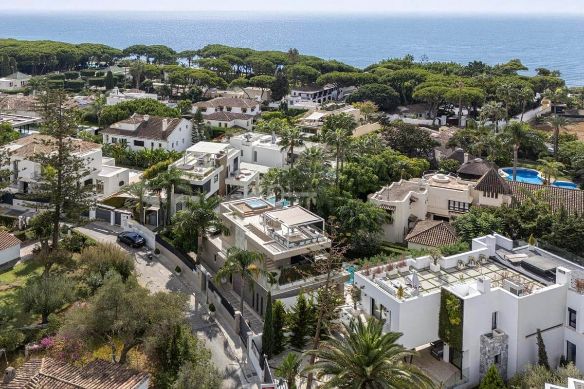 Ta wyjątkowa willa łączy najnowocześniejszy design z jedną z najbardziej poszukiwanych lokalizacji w Marbelli, prestiżową Golden Mile, zaledwie 150 metrów od Morza Śródziemnego.