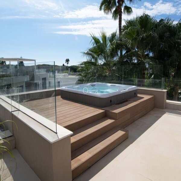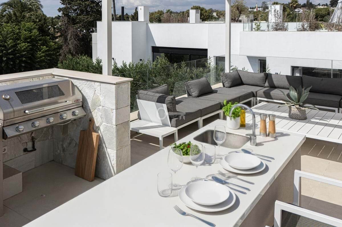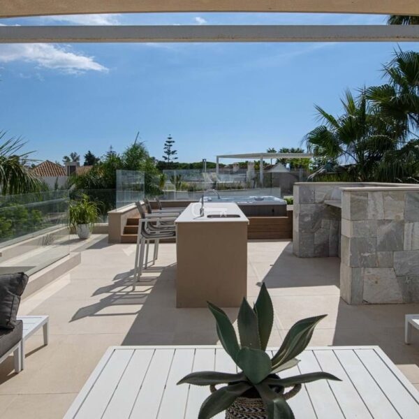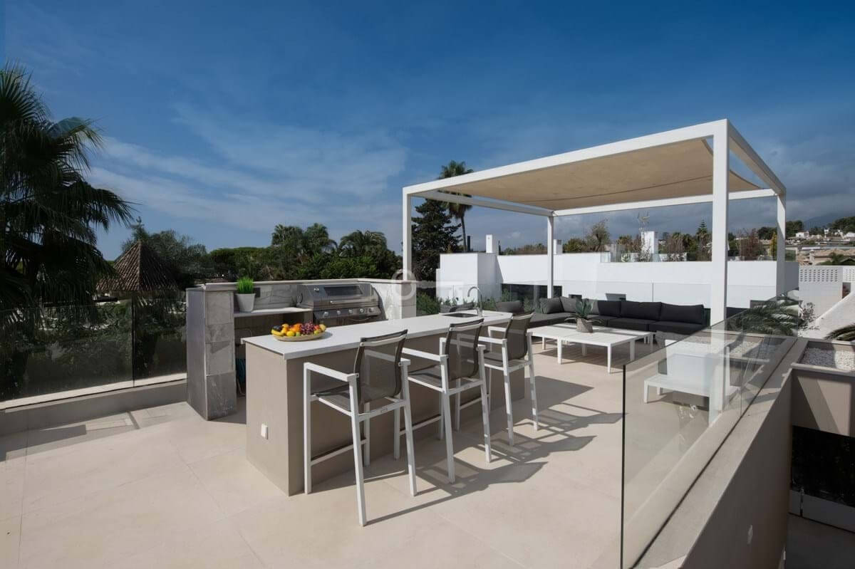 Jedną z głównych atrakcji nieruchomości jest imponujący taras na dachu, prywatna przystań z jacuzzi, grillem, barem i luksusowym kącikiem wypoczynkowym. Z tego miejsca można podziwiać zapierające dech w piersiach widoki na górę La Concha z jednej strony i przebłyski Morza Śródziemnego z drugiej.