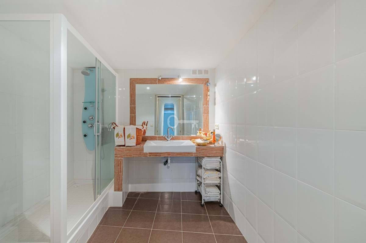 Na głównym piętrze znajduje się przestronny i jasny salon z kominkiem, częścią telewizyjną, salonem i jadalnią. Ma bezpośredni dostęp do otwartego tarasu, który prowadzi do części wspólnych i basenu.