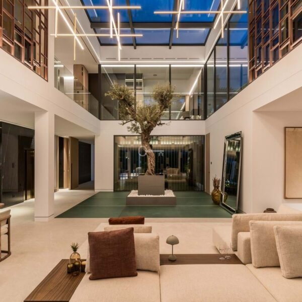 Wnętrze tej wspaniałej nieruchomości obejmuje pięć sypialni i pięć łazienek, tworząc pojemne i wyrafinowane mieszkanie ozdobione wyjątkowo wysokiej jakości materiałami. Rezydencja zapewnia przestronne przestrzenie mieszkalne wewnątrz i na zewnątrz, doskonale nadające się do rozkoszowania się wyjątkowym klimatem regionu przez cały rok. Na terenie znajdują się dwa prywatne baseny o spokojnym pięknie i zielony ogród z urzekającym widokiem na morze.