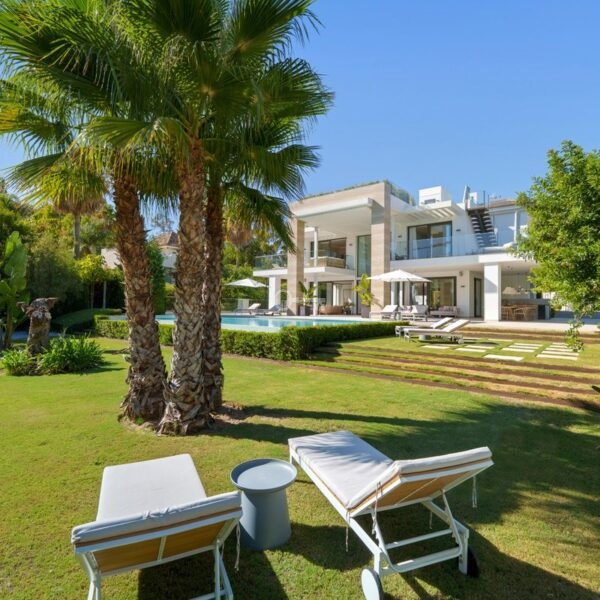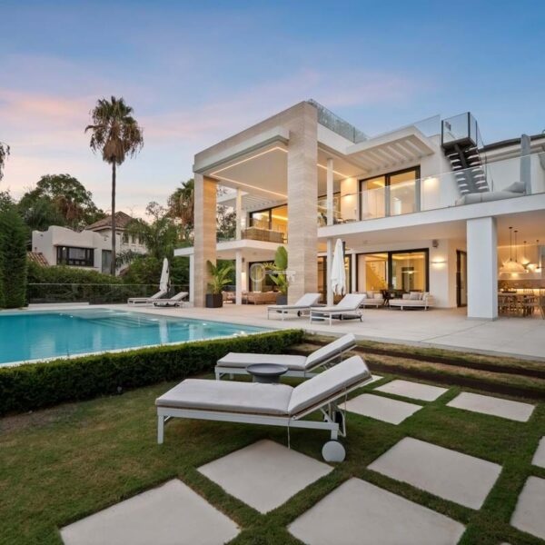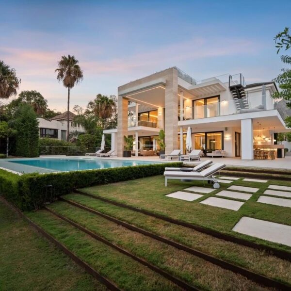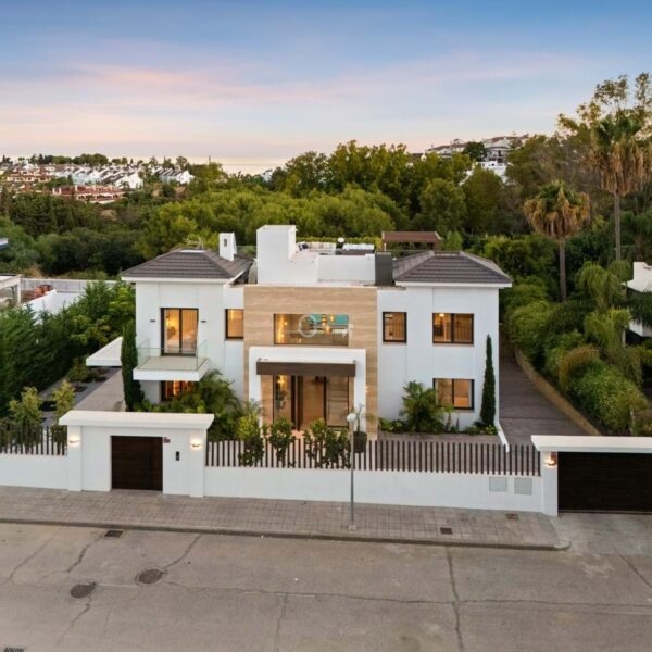Położona w prestiżowym Altos de Puente Romano na Złotej Mili Marbellas, Villa Romano jest uosobieniem nowoczesnego śródziemnomorskiego luksusu. Ta imponująca rezydencja z sześcioma sypialniami i sześcioma łazienkami łączy elegancką współczesną architekturę z ciepłymi naturalnymi odcieniami, tworząc przytulne sanktuarium zaledwie kilka minut od plaży i najlepszych restauracji i rozrywek Marbellas. Okna sięgające od podłogi do sufitu zalewają wnętrza światłem, a płynne przejścia między przestrzeniami wewnętrznymi i zewnętrznymi oddają istotę życia na Costa del Sol.
