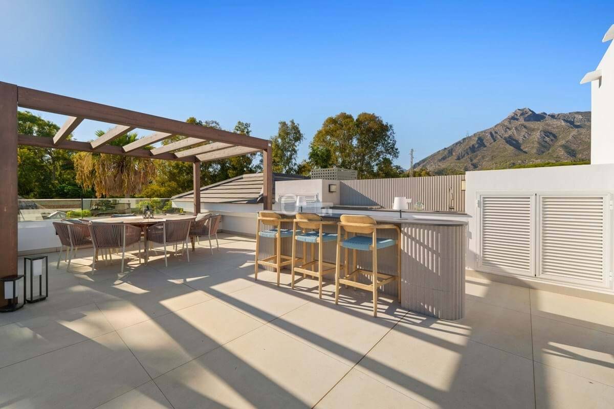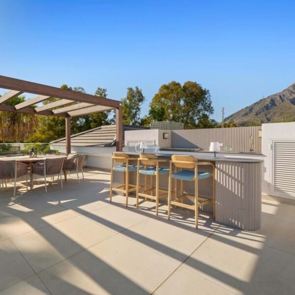 Rozległe obszary mieszkalne willi zostały zaprojektowane z myślą zarówno o stylu, jak i komforcie, od eleganckiego salonu na otwartym planie i designerskiej kuchni po formalną jadalnię i elegancki salon rozrywkowy. Każda sypialnia jest prywatnym azylem z łazienką, a główny apartament oferuje łazienkę inspirowaną spa z wolnostojącą wanną i zapierającym dech w piersiach widokiem na górę La Concha. Na zewnątrz, liczne tarasy, salon na dachu z jacuzzi i spektakularny basen bez krawędzi stanowią idealne tło do relaksu i rozrywki.