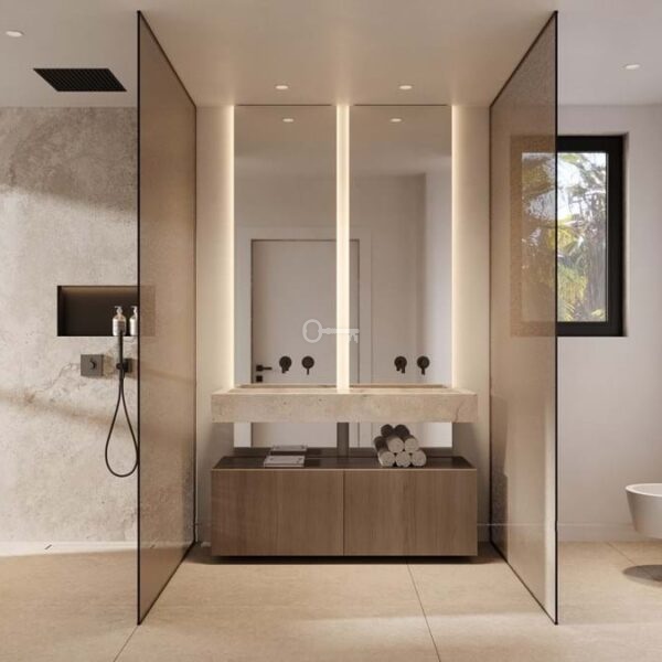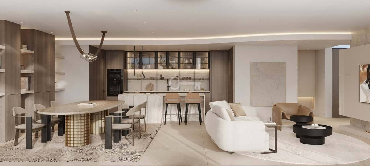 It is designed for life by the sea. The spacious interiors open onto panoramic terraces, private gardens and swimming pools, creating a sense of continuity, where architecture and nature coexist in harmony.