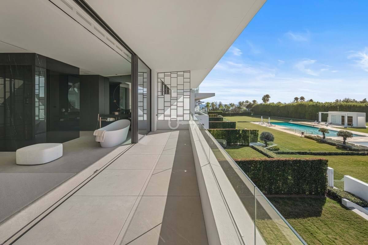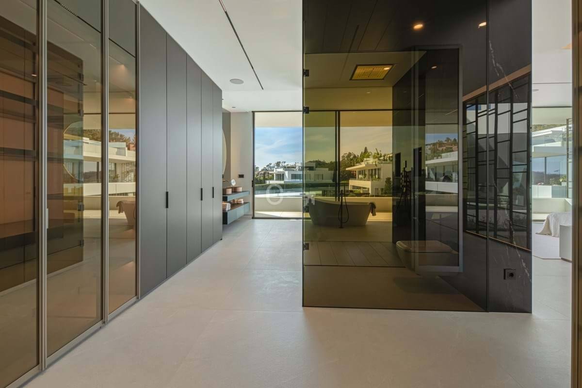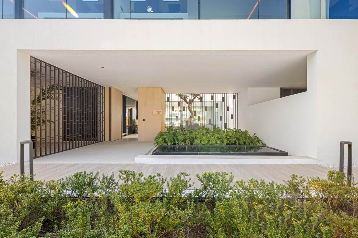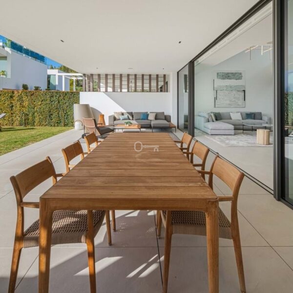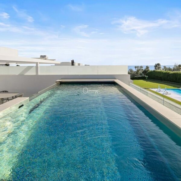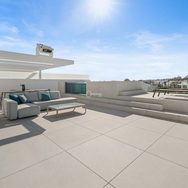 Above it all, the rooftop terrace becomes the setting that quietly defines the home. A private pool runs along the edge with space for dining, lounging and evening gatherings beneath a pergola, opening to views across the Golden Mile and the Mediterranean. Set within a secure boutique community and within walking distance of Puente Romanos restaurants, beach clubs and promenade, Villa 7 balances privacy with immediate access to Marbellas most social stretch of coastline.