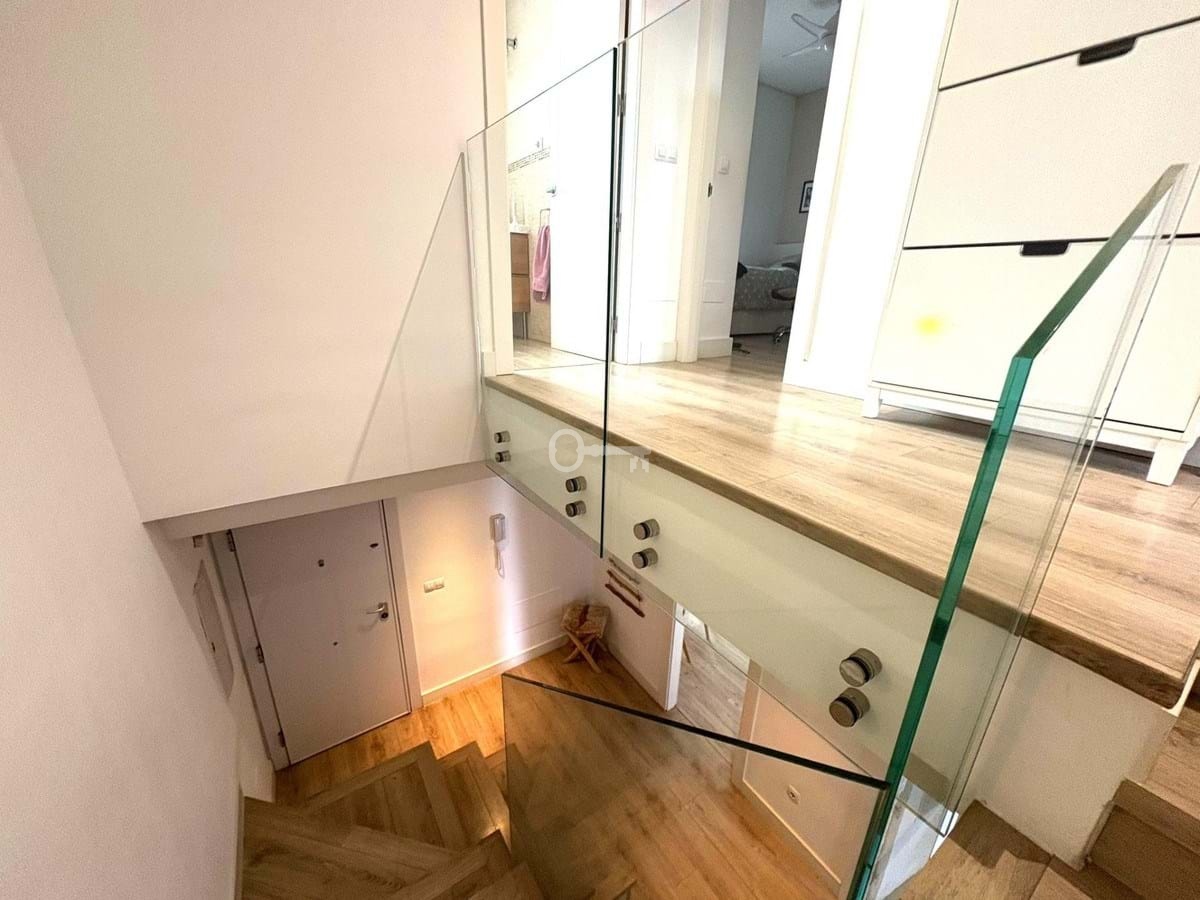 Nieruchomość ma bezpośredni dostęp z ulicy przez urocze frontowe patio. Po wejściu wita przestronny hol wejściowy z nowoczesnymi schodami z elegancką szklaną balustradą, która prowadzi do jasnego i funkcjonalnego układu. Na głównym piętrze znajduje się w pełni wyposażona kuchnia, oddzielna pralnia, w pełni wyposażona łazienka, jedna sypialnia i przestronny salon z bezpośrednim dostępem do dużego tarasu z zapierającym dech w piersiach widokiem na zatokę Malaga.