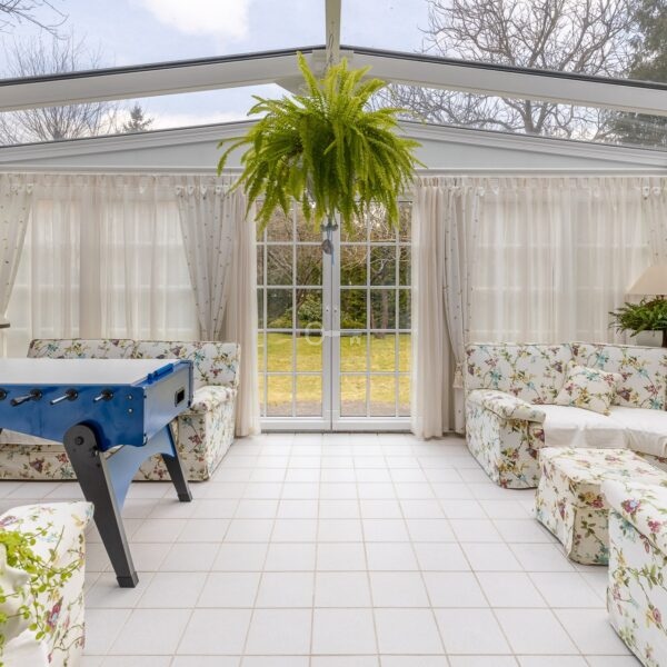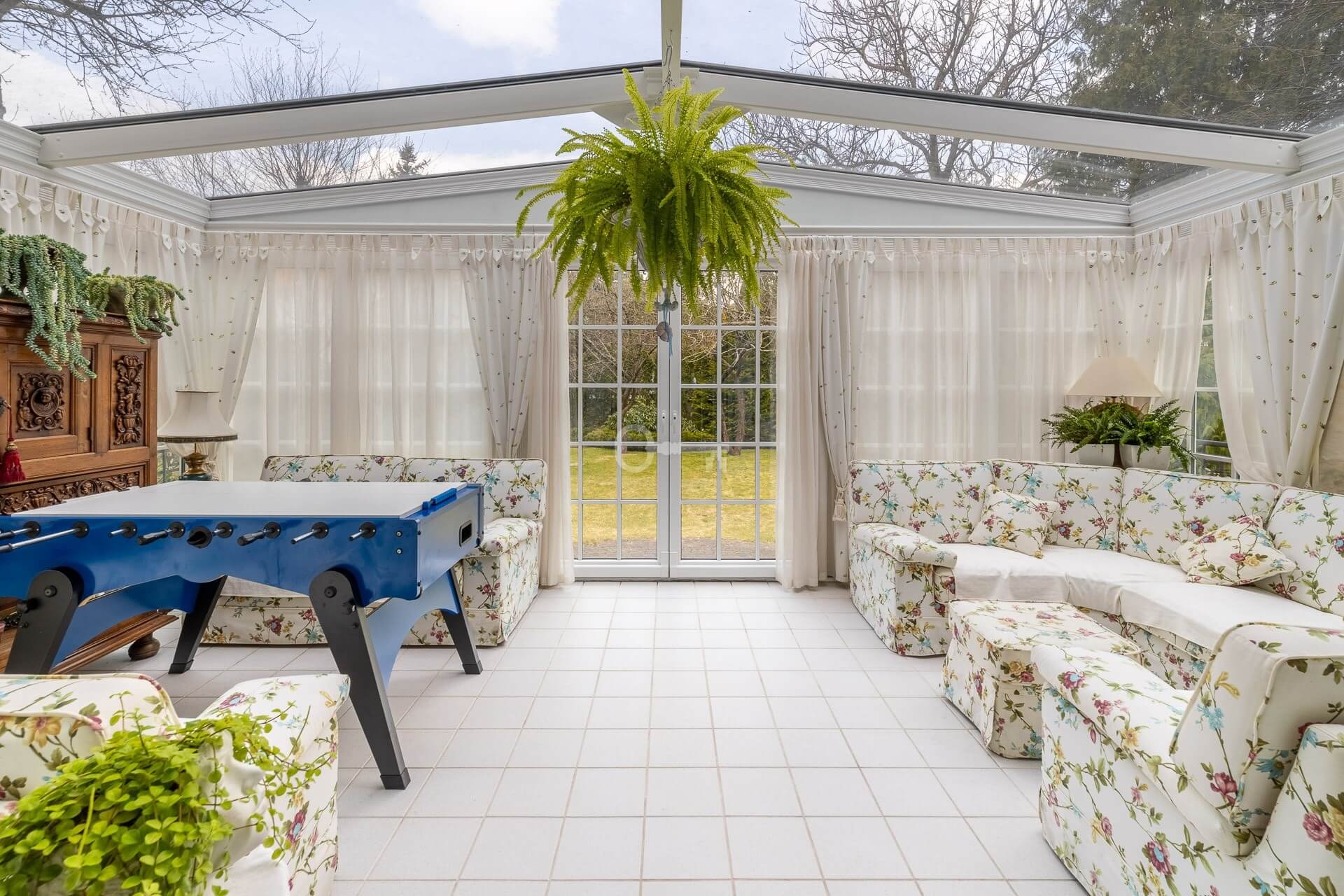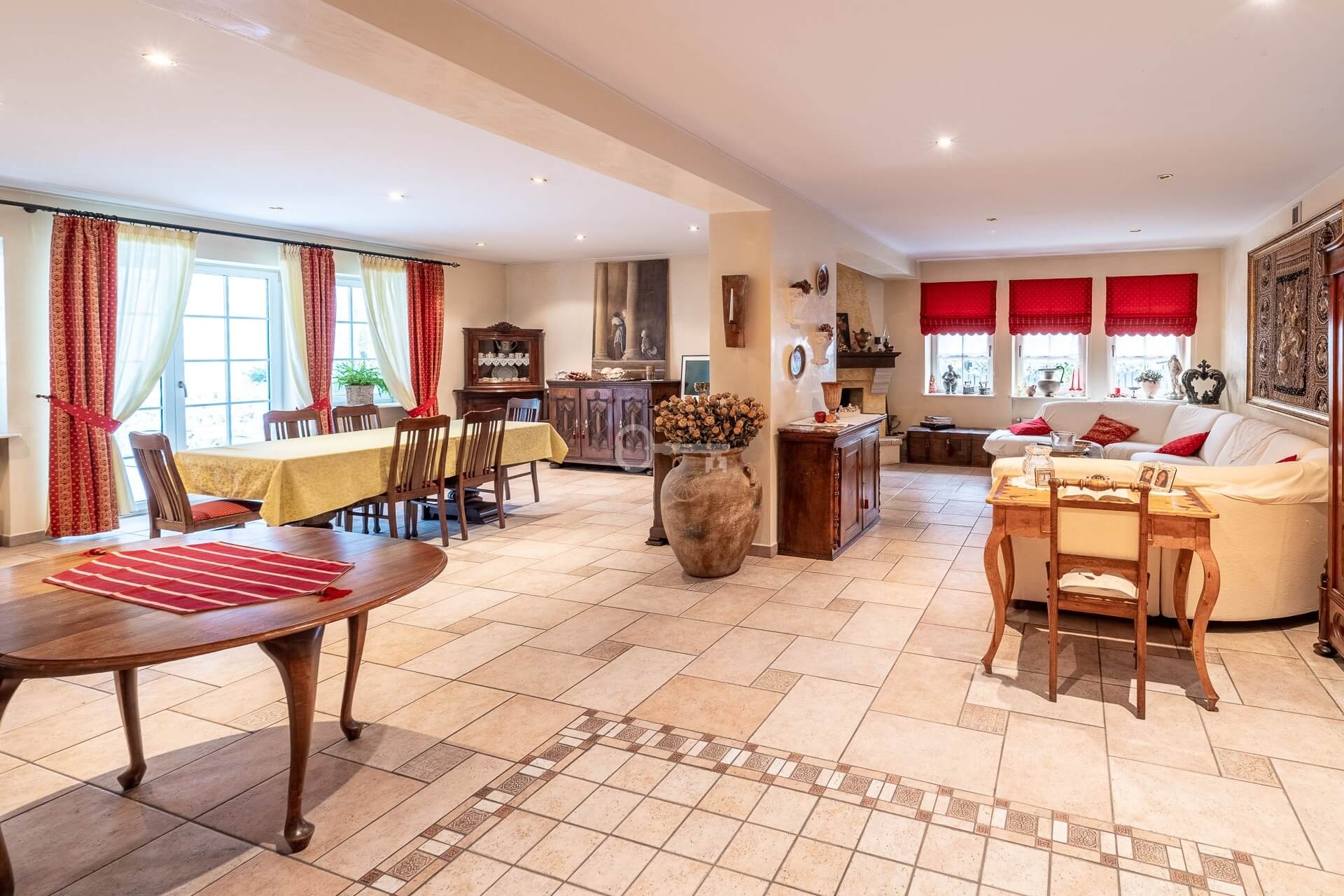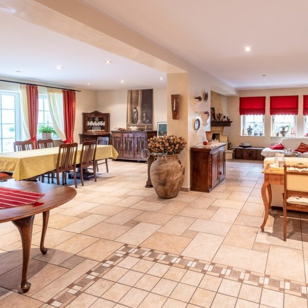 * salonu z kominkiem i jadalnią i z bezpośrednim wyjściem do ogrodu zimowego,