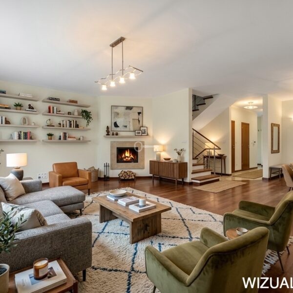 Rezerwat Las Kabacki znajduję się zaledwie 50 m od domu. Jest to idealne miejsce na aktywny wypoczynek. Jednocześnie dom jest oddalony zaledwie 15 minut od Centrum Warszawy. Z dobrym dostępem do ulicy Puławskiej jak również obwodnicy S2 i S8. Idealne miejsce dla osób chcących żyć wygodnie, w ciszy i w otoczeniu przyrody.