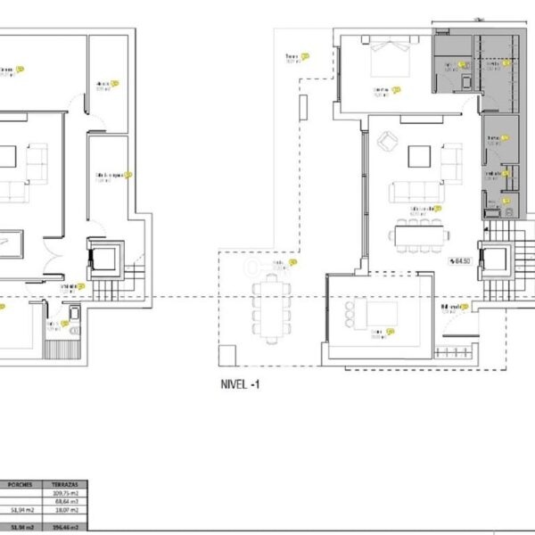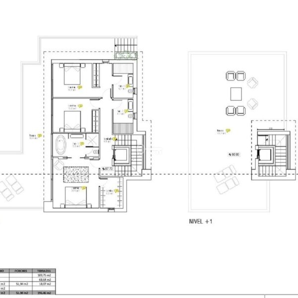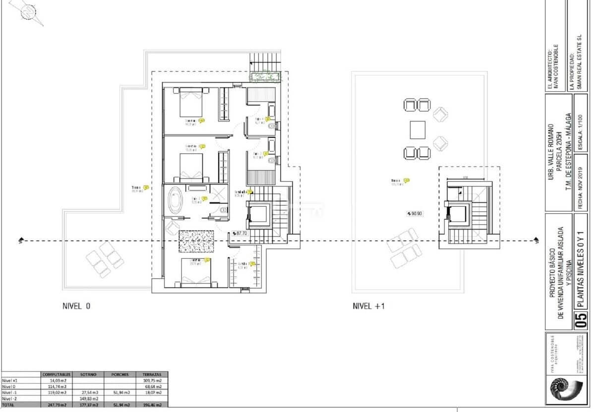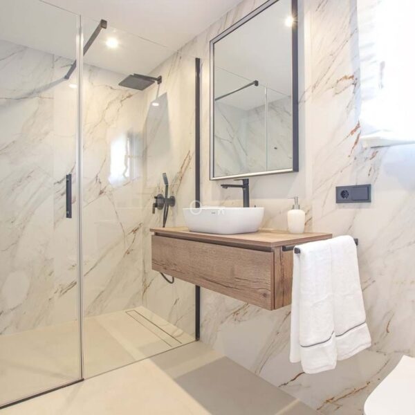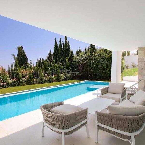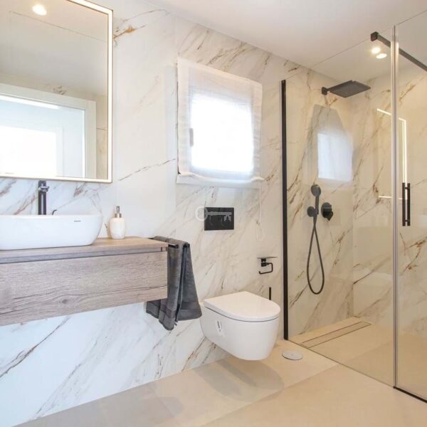 Spektakularna willa z 4 sypialniami, 4 łazienkami i 1 toaletą podzielona na 3 piętra. Z parteru roztacza się częściowy widok na morze, a z pierwszego piętra i solarium roztacza się spektakularny widok na morze, góry i pole golfowe. Bardzo przestronna piwnica z garażem i miejscem na kilka samochodów.