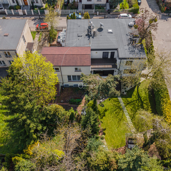 Ta nieruchomość znajduje się na jednej z piękniejszych uliczek Zielonej Sadyby. Dom otoczony jest roślinami. Na działce rosną dojrzałe drzewa.