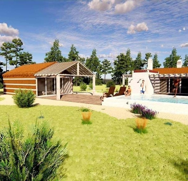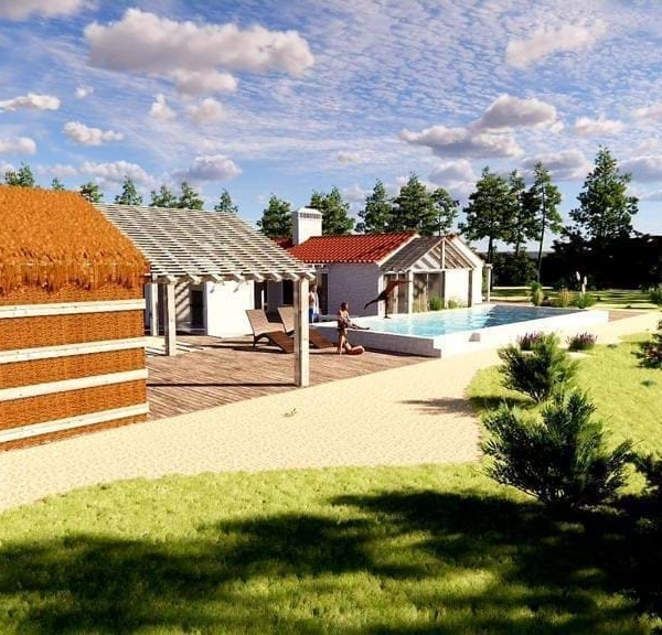 Ten projekt ma jako koncepcję typową konstrukcję domów Comporta, w tym główny dom z: 3 apartamentami, kuchnią i zewnętrznymi łazienkami z 1 niezależnym apartamentem, basenem, z łatwym dostępem, płaskim, z wodą, światłem, drzewami oliwnymi i 2 studniami.