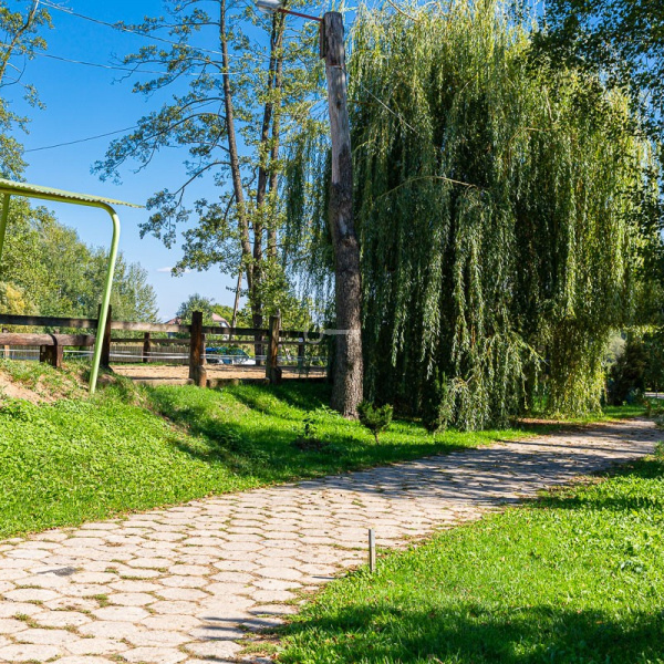 Piękne, zielone łąki, urozmaicone ukształtowanie terenu, starodrzew i przejście duktem pod promenadą olszyn do magicznego domu właścicieli zachwyca i sprawia, że łapiemy inną, bardziej pozytywną energię.