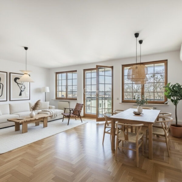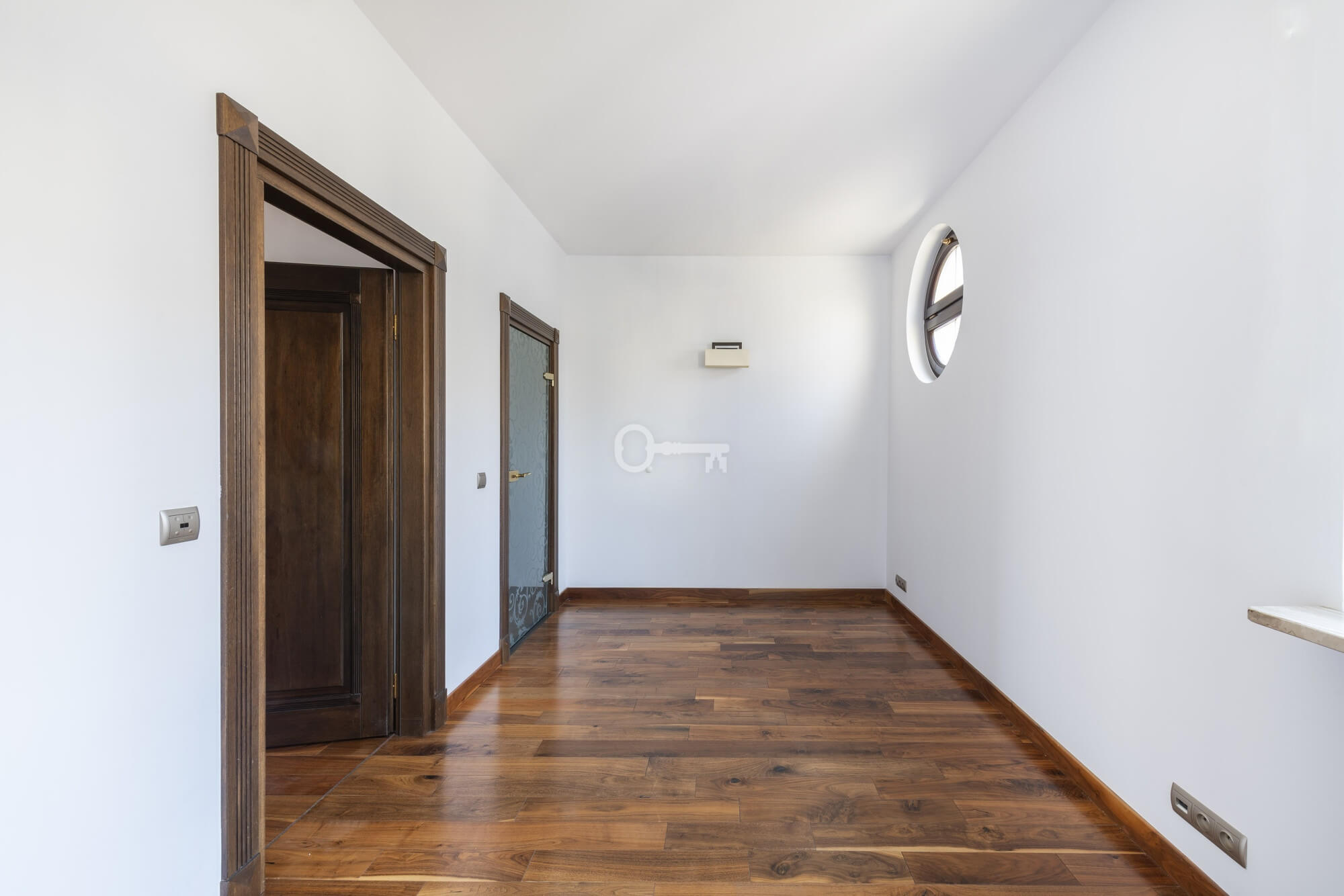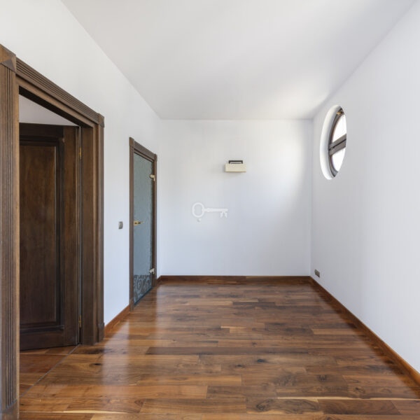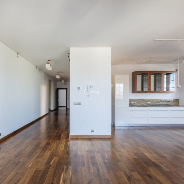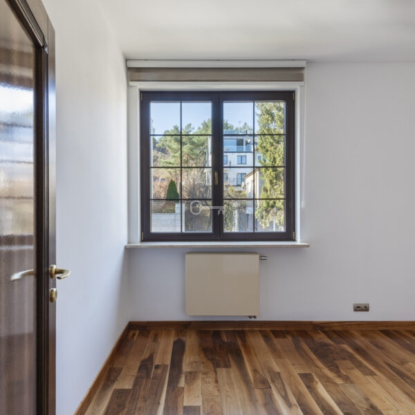 * Wysokiej jakości materiały wykończeniowe – podłogi, listwy i drzwi z drewna orzechowego