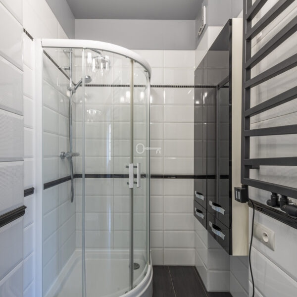 Centralnym punktem jest przestronny, jasny salon typu open-space z aneksem kuchennym – doskonały jako recepcja lub strefa spotkań. Cztery niezależne, ustawne gabinety zapewniają pełną dyskrecję pracy.