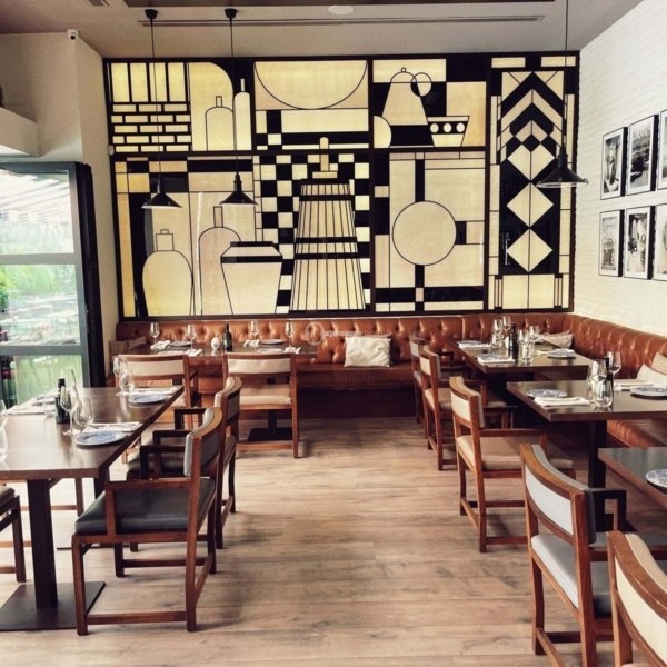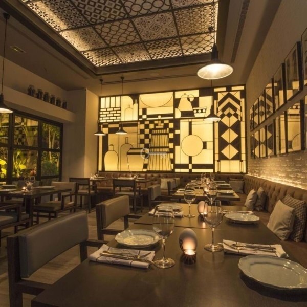 Utrzymane w nienagannym stanie, przestronne wnętrze o powierzchni 300 m2 z 85 miejscami siedzącymi (z możliwością rozbudowy do 100) jest rozmieszczone na parterze z dużymi oknami, które umożliwiają dostęp naturalnego światła i płynną kontynuację zewnętrznego tarasu miejskiego. Po wejściu do środka znajduje się obszerna otwarta jadalnia, półprywatna jadalnia, profesjonalny bar wraz z w pełni wyposażoną profesjonalną otwartą kuchnią, schowkiem i winiarnią, 3 toalety dla gości. Cała frontowa jadalnia restauracji otwiera się płynnie na prywatny taras o powierzchni 150 m2 z 75 miejscami siedzącymi, co tworzy płynną i bardzo zachęcającą przestrzeń zarówno wewnątrz, jak i na zewnątrz.
