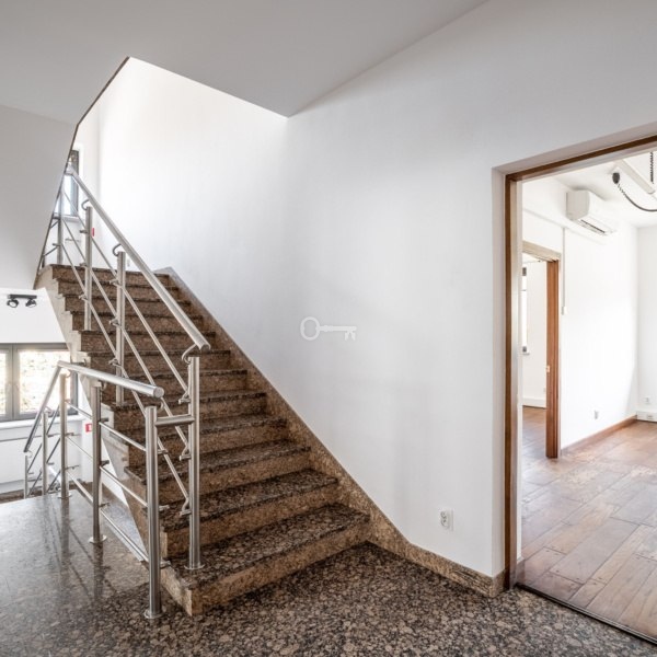 Duży budynek stanowiący połowę bliźniaka znajduje się w atrakcyjnej lokalizacji, nieopodal stacji metra. Swobodna aranżacja wnętrza, oraz prywatny parking na dwanaście samochodów przed budynkiem czynią ofertę szczególnie atrakcyjną.