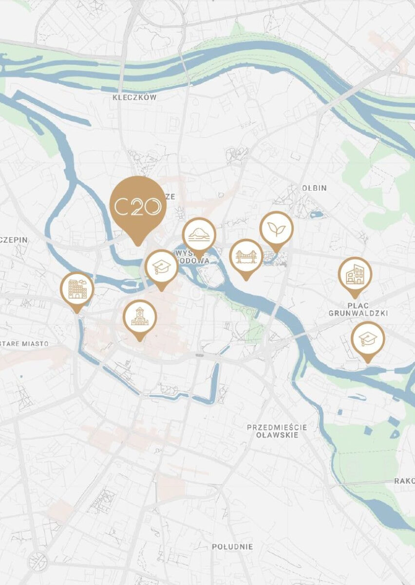 Prestiżowa lokalizacja w centrum Wrocławia.W bliskiej odległości: Bulwary nad Odrą, Wyspa Słodowa, Rynek, Ostrów Tumski, Uniwersytet Wrocławski, Politechnika Wrocławska, Plac Grunwaldzki. Doskonała komunikacja miejska.