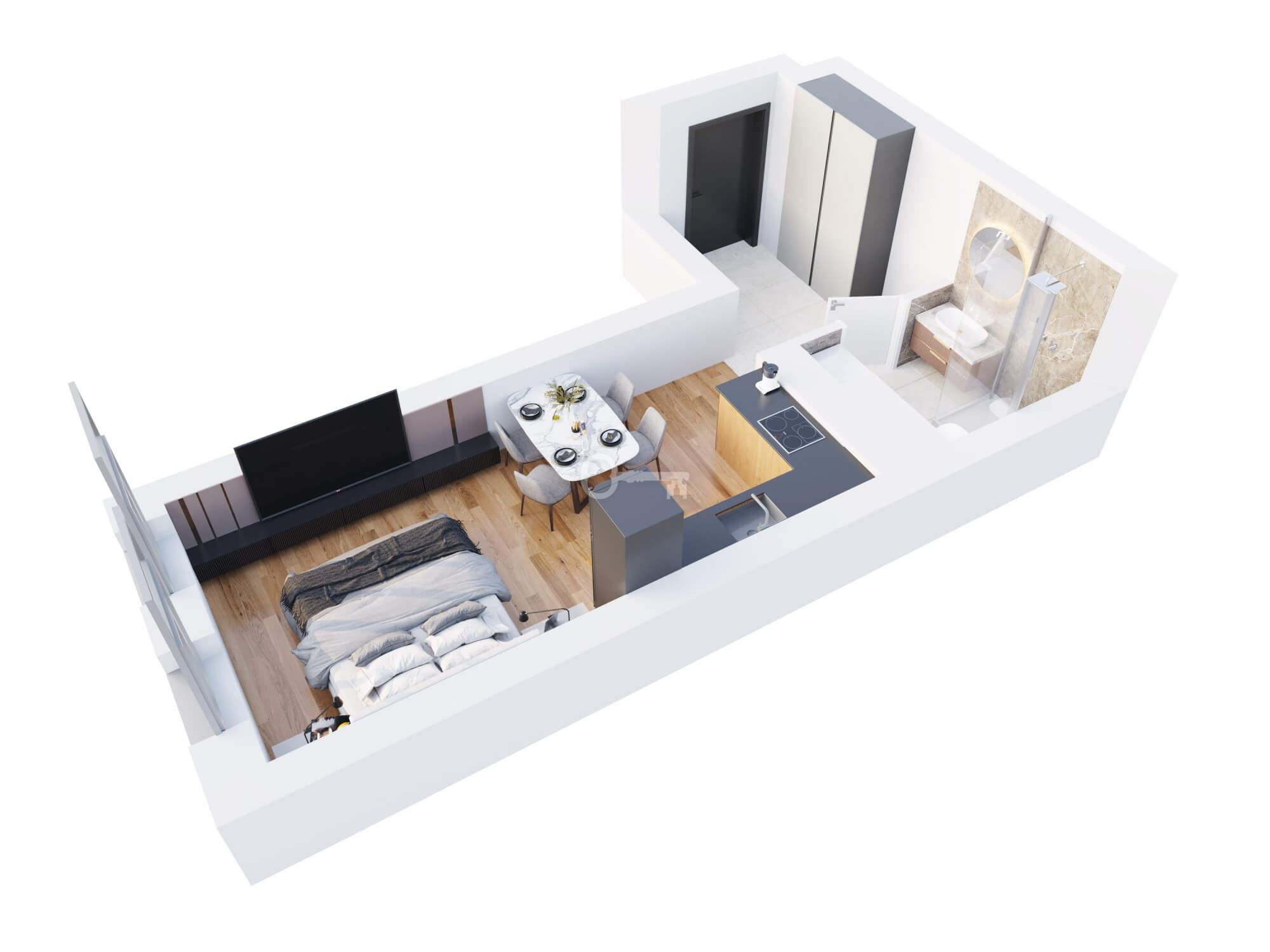 * 5 mieszkań 1-pokojowych o metrażu ok. 28 m2,