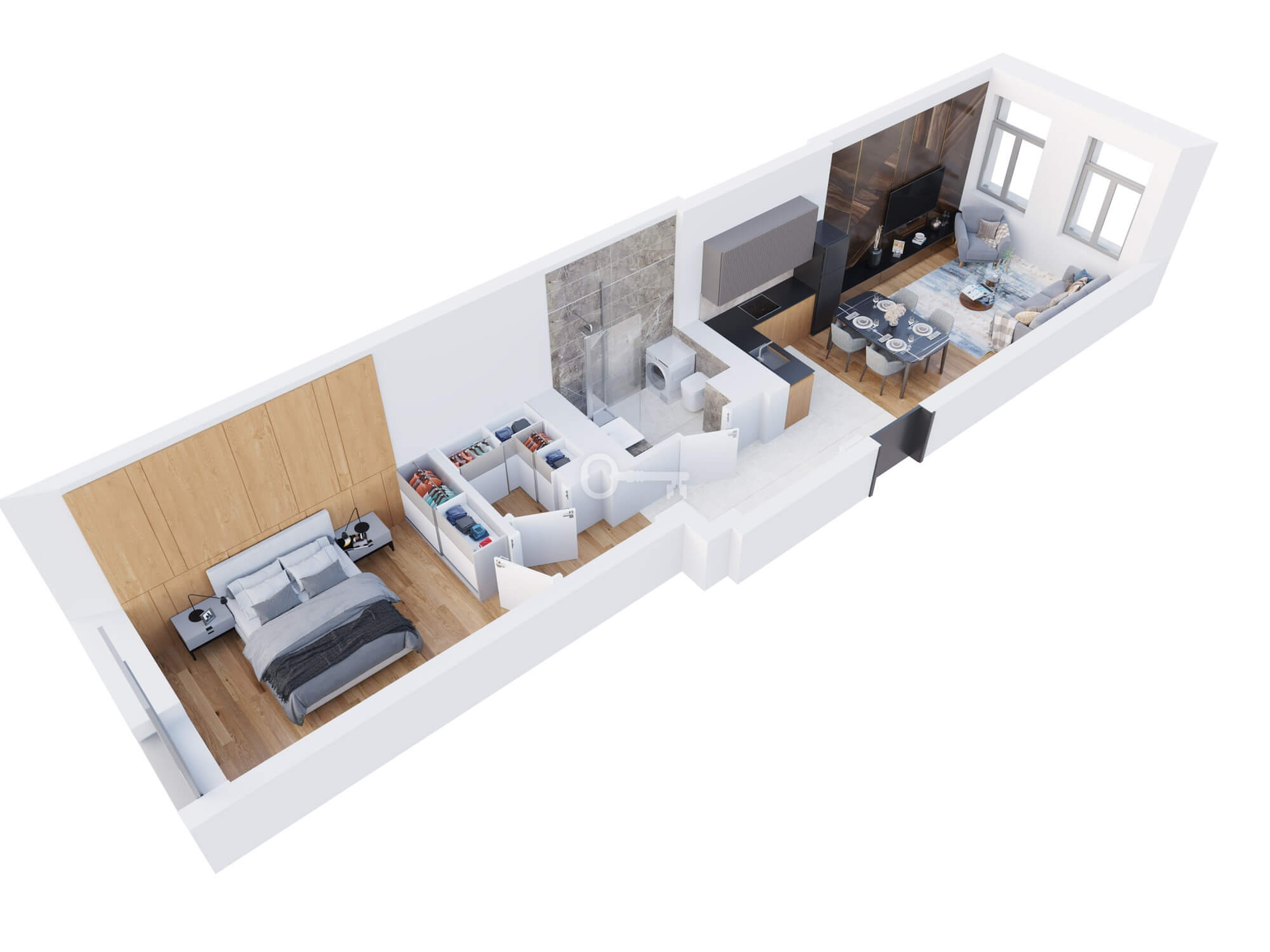 Budynek składa się z 23 mieszkań o zróżnicowanym metrażu, od 28 m2 do 51 m2 :
