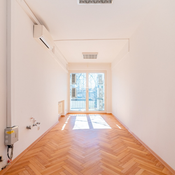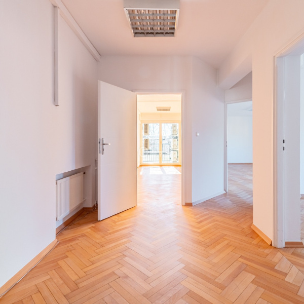 Nieruchomość składa się z pięciu pomieszczeń, małego pomieszczenia / magazynu, przedpokoju, toalety oraz niewielkiego balkonu.