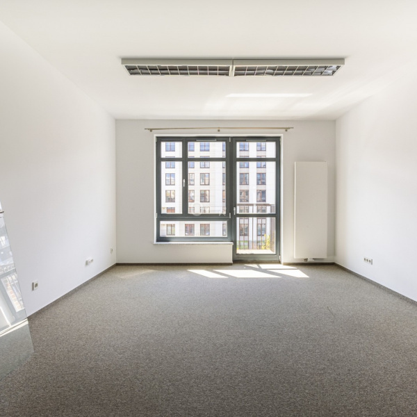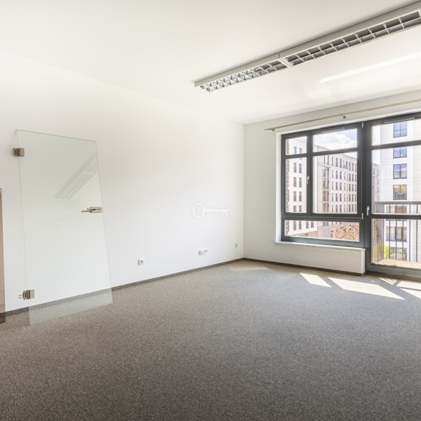 Klimatyzowane wnętrze z dużymi oknami jest gotowe do wprowadzenia się i aranżacji pod potrzeby konkretnego najemcy. Podłoga lokalu pokryta jest wykładziną.