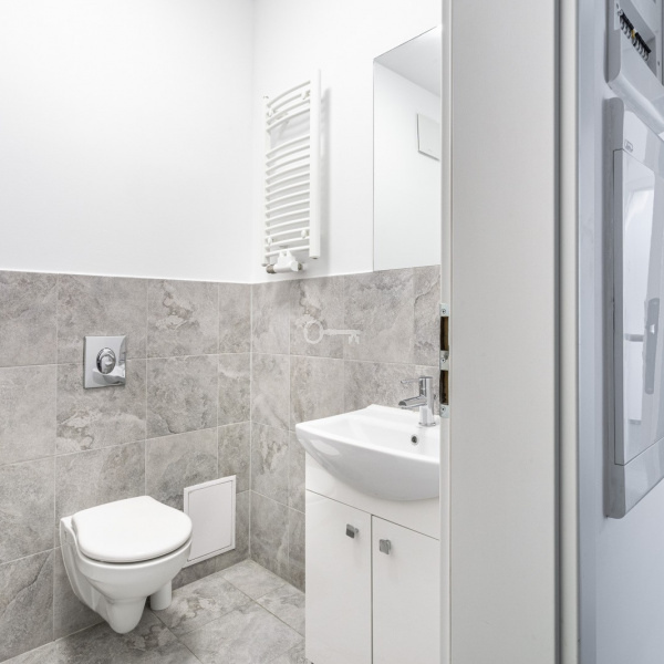 Funkcjonalny, świetnie doświetlony dwupokojowy lokal o powierzchni 60 mkw, zlokalizowany w nowoczesnym 6-piętrowym budynku w stylu soft-loftowym.