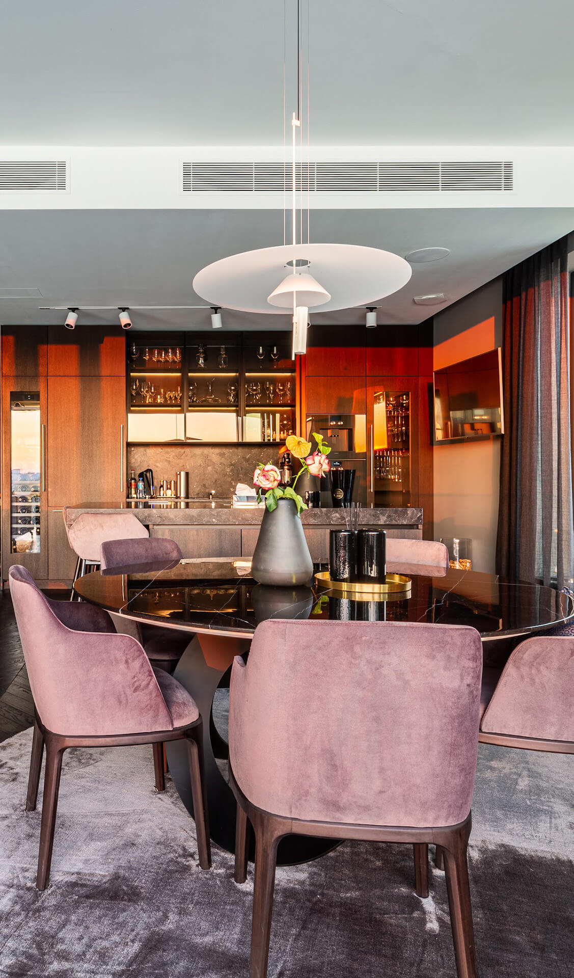 Charakterystyczne dla tego segmentu są ogromne przeszklenia na całą wysokość ściany oraz obszerne tarasy – detale, których w zwykłej zabudowie po prostu nie ma. Wykończenie premium to jednak nie tylko materiały. To także proporcje otworów, grubość profili i sposób, w jaki spotykają się ze sobą kolejne elementy. Bez tego zostaje wnętrze, któremu klasę daje wyłącznie dekorator.