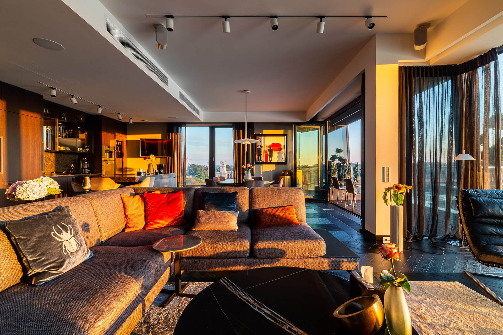 W apartamencie strefa dzienna jest wyraźnie oddzielona od nocnej. Główna sypialnia – tak zwany master bedroom – ma własną łazienkę i garderobę, czego w typowym mieszkaniu się nie spotyka. Drugą różnicą jest wysokość pomieszczeń: minimum 280-300 cm zamiast zwyczajowych 250-260 cm. Te dodatkowe czterdzieści centymetrów pod sufitem otwierają drogę do antresoli, pełnych witryn i naprawdę przestronnych wnętrz, które kojarzą się bardziej z dawnymi rezydencjami niż ze współczesnym blokiem.