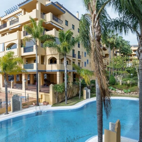 Apartament na środkowym piętrze, Marbella, Costa del Sol. 2 sypialnie + pralnia, 2 pełne łazienki + 1 toaleta dla gości, powierzchnia zabudowy 120 m², taras 10 m². Otoczenie : plaża, blisko sklepów, blisko morza, urbanizacja, kompleks plażowy w pierwszej linii brzegowej. Orientacja: południowy zachód. Stan : Doskonały, Niedawno odnowiony. Basen…