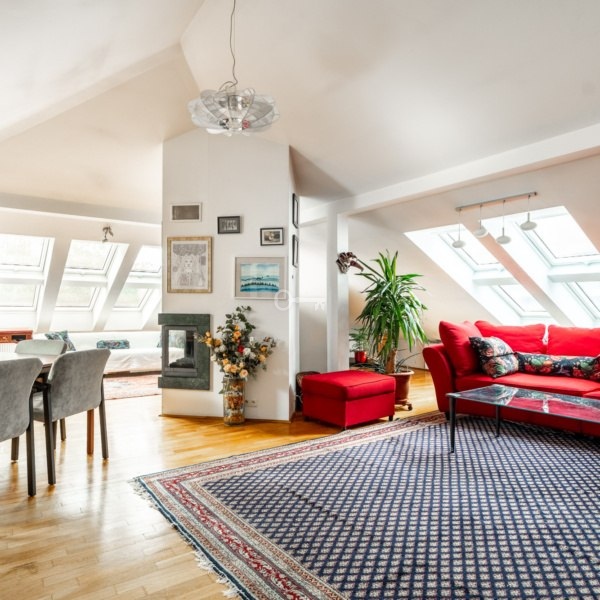 SŁONECZNY, DWUPOZIOMOWY APARTAMENT NA ŻOLIBORZU ARTYSTYCZNYM 3 sypialnie + gabinet | 2 łazienki | prawie 6 metrów wysokości w salonie | ostatnie piętro | południowo-zachodni taras z widokiem na skyline Warszawy | klimatyzacja | 2 miejsca parkingowe | zamknięte osiedle z zadbanym patio Mieszkanie idealne dla rodziny 2+1 / 2+2.…