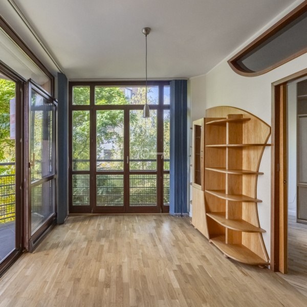 ELEGANCKI APARTAMENT Z WIDOKIEM NA ZIELEŃ W SERCU MIASTECZKA WILANÓW Widok na drzewa i pełna prywatność | 2 loggie | Panoramiczne okna od podłogi do sufitu | Wysokość 3 m | Niskie budownictwo | Idealne dla rodziny 2+2 *****ROZKŁAD POMIESZCZEŃ: W skład apartamentu wchodzą: * Przestronny salon z kuchnią – centralna…